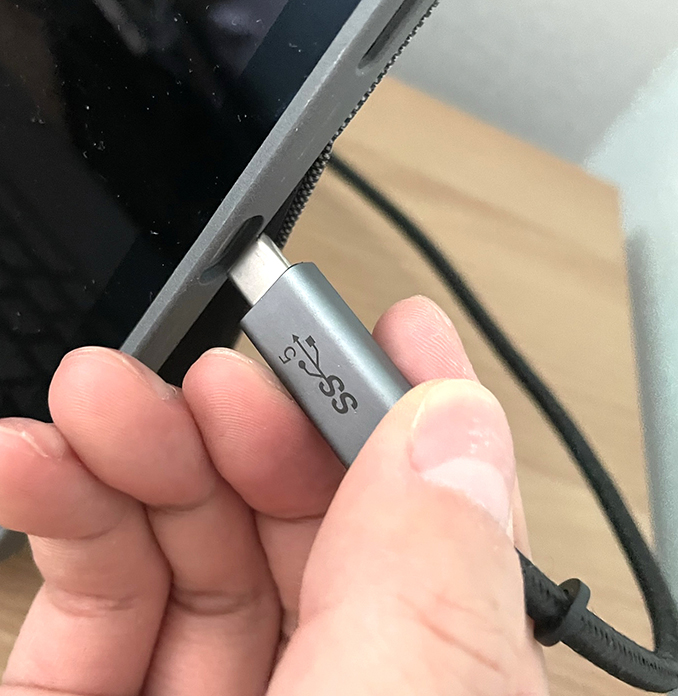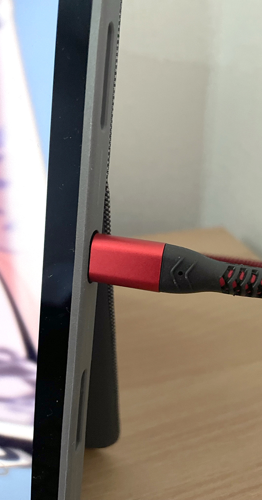 약간 문제가 있는데 USB 단자 입구가 굉장히 좁습니다. USB C 단자의 턱이 넓거나 네모에 가까우면 사용하지 못합니다. 아이패드 기본 제공 USB C 케이블은 잘 되니 다른 케이블 구매할 때 해당 케이블과 비교해서 구매하셔야 합니다.