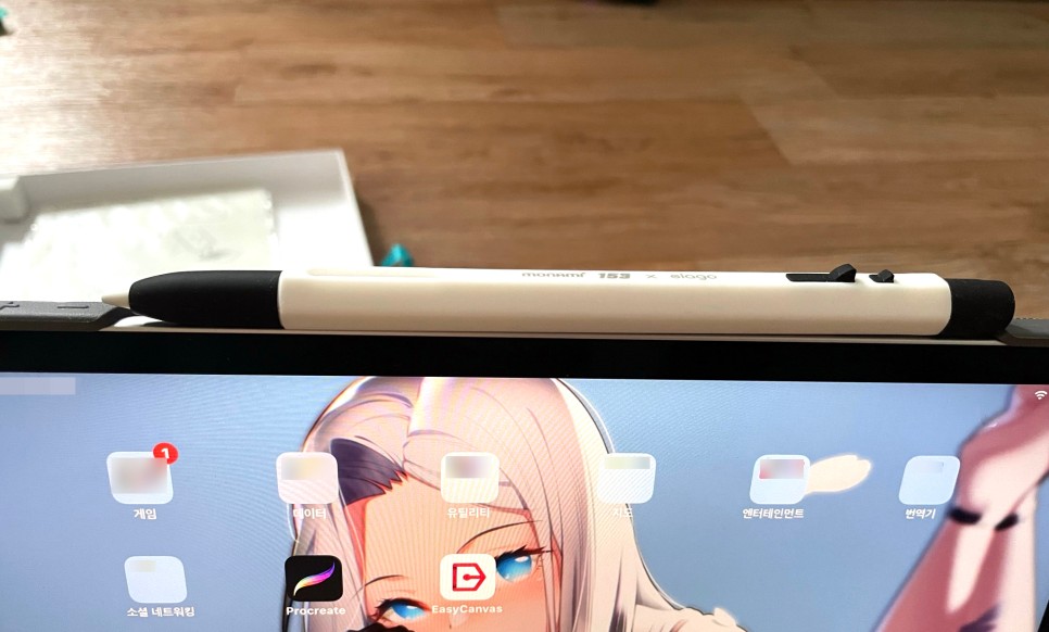 펜슬도 부착됩니다. 다만 케이스 열고 닫을 때 손으로 펜슬을 건드리기 때문에 펜슬이 떨어져서 굴러다니는 일이 자주 발생합니다. 이건 좀 불편하네요.