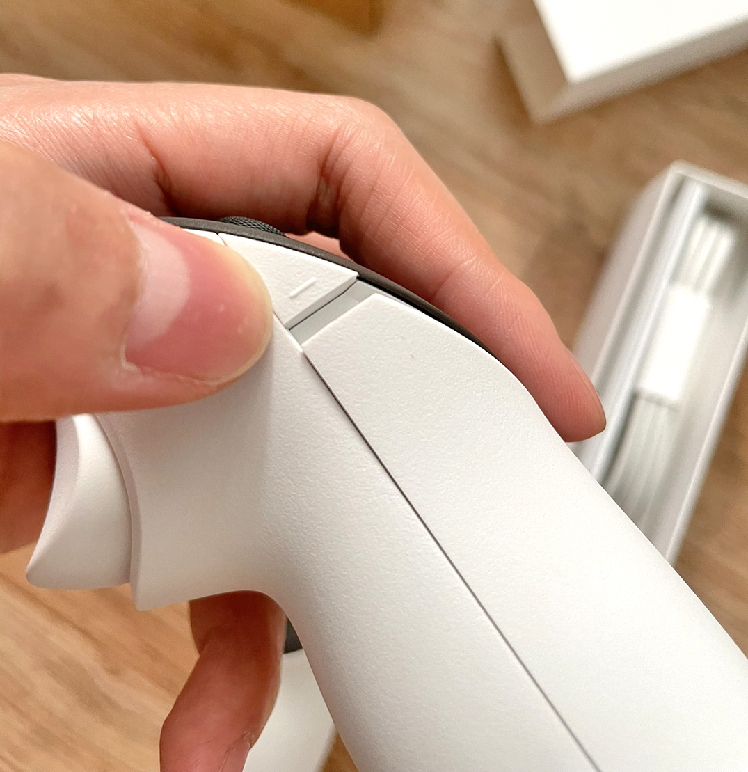 마지막으로 내부 간격 조절. 해당 버튼은 좌우에 둘 다 있으며, 누른 채로 당기거나 밀면 4단계로 조절할 수 있습니다. 저는 한 2~3단계 정도로 조절하면 안경 쓴 채로 착용 가능했습니다. 렌즈 가이즈 굳이 구매할 필요 없을 듯합니다.
